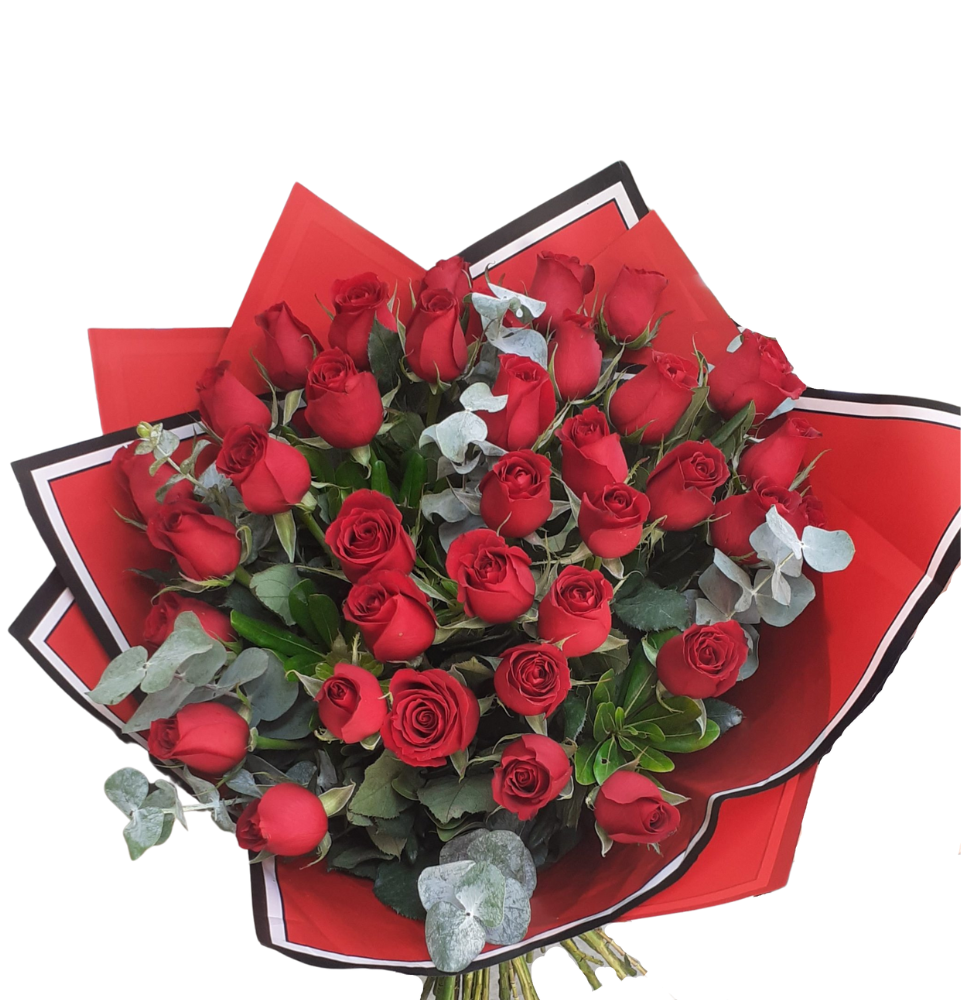 Ramo de 24 Rosas Rojas Incluye follaje mirto helechos, gipsófilas, lazo y tarjeta. Con el lenguaje de las flores puedes transmitir todos aquellos sentimientos que te cueste trabajo decir, no olvides obsequiar y ordena ahora los mejores modelos aquí en tu Floristería en Panamá.