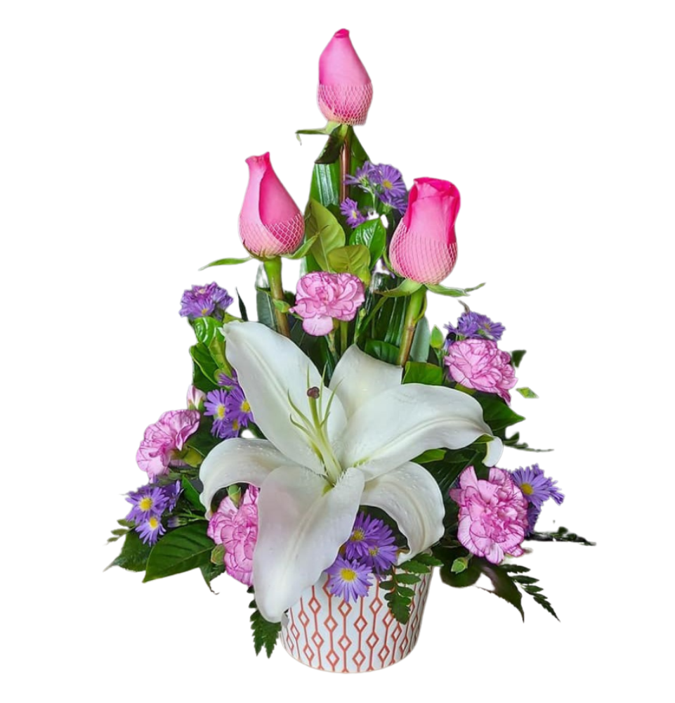 Arreglo variado con Lirio, Rosas, Claveles y toques de otras flores complementarias. No olvides obsequiar y ordena ahora los mejores modelos aquí en tu Floristería en Panamá.