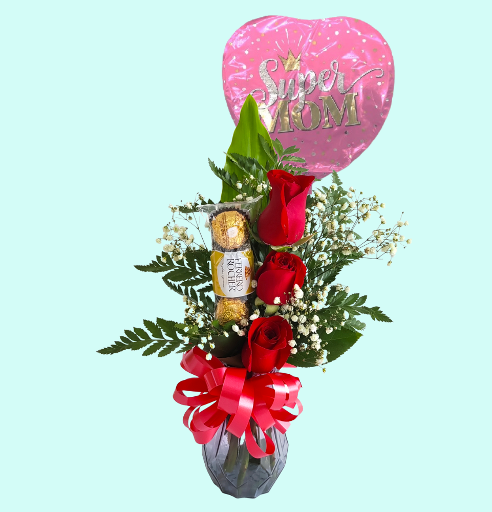 Florero de 3 rosas rojas, un detalle especial para este día de las madre, no olvides obsequiar y ordena ahora los mejores modelos aquí en tu Floristería en Panamá.