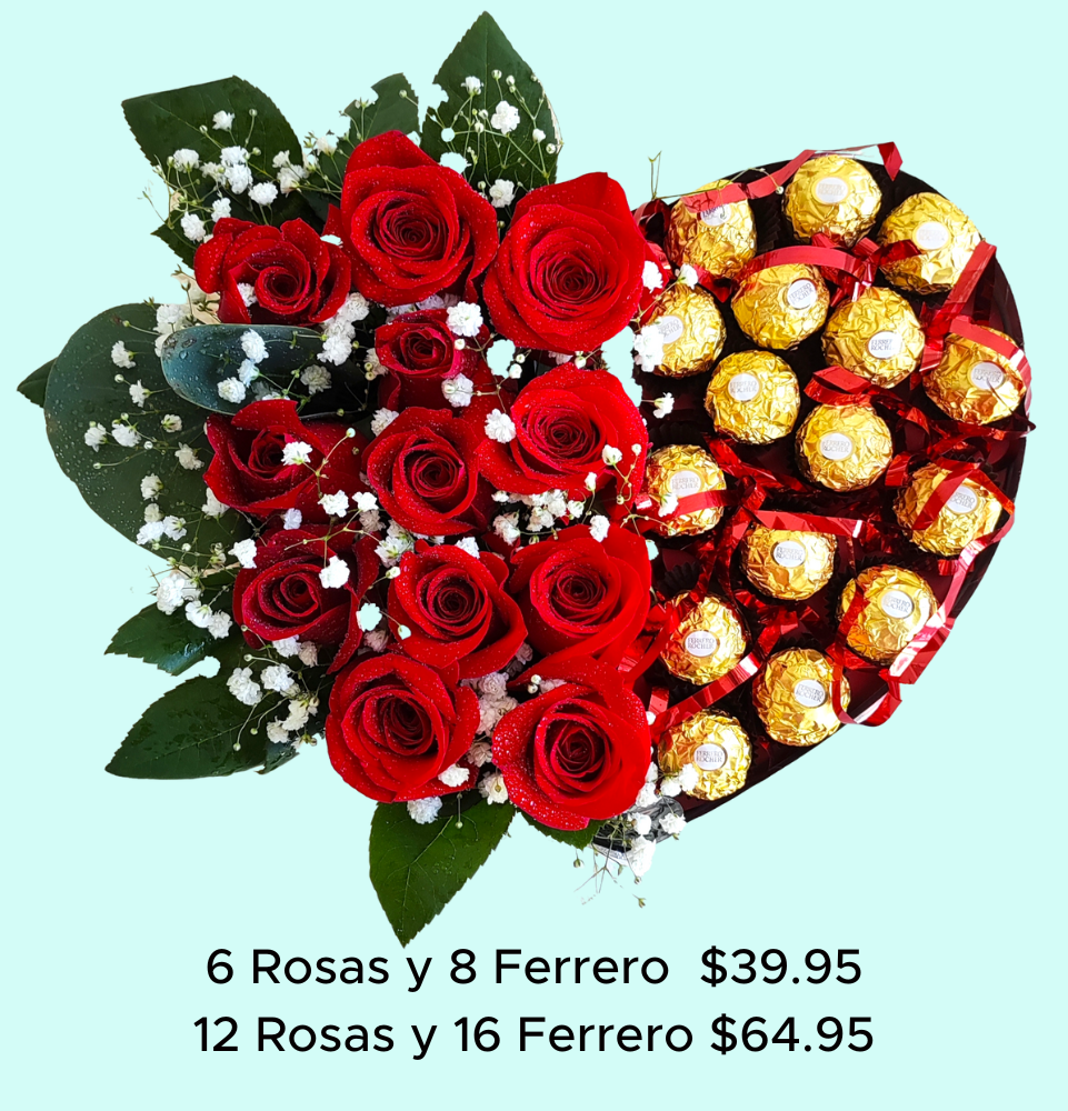Caja con 12 rosas rojas y 16 Ferrero Rocher. Un detalle especial para este día de las madre, No olvides obsequiar y ordena ahora los mejores modelos aquí en tu Floristería en Panamá.