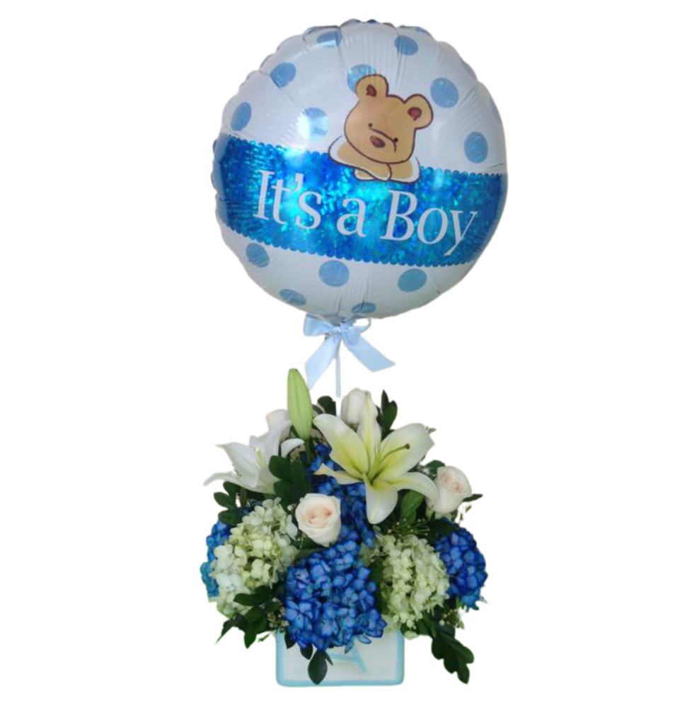 Arreglo de flores variadas para nacimiento de bebe, también se puede hacer el mismo modelo con opción para Niña. No olvides obsequiar y ordena ahora los mejores modelos aquí en tu Floristería en Panamá.
