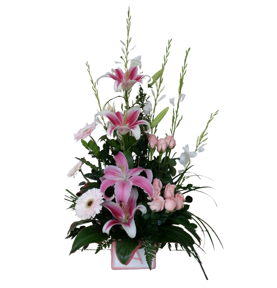 Arreglo de flores variadas para nacimiento de bebe, también se puede hacer el mismo modelo con opción para Niño. No olvides obsequiar y ordena ahora los mejores modelos aquí en tu Floristería en Panamá.